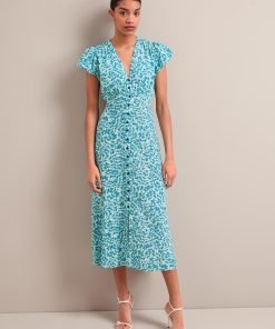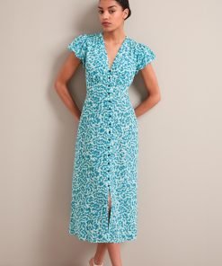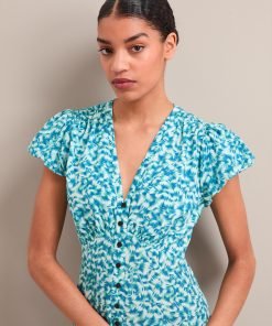 Cool, modern and elegant, Leila’s puff sleeve, V-neck and under-bust shirring create a super flattering silhouette. Cut from lightweight and luxe crepe de chine, it has fixed buttons (so won’t gape) and sexy side slits to allow easy movement. Choose between our iconic Camo Pansy print in a soft yet stand-out red, or new-for-this-season Abstract Feather print.