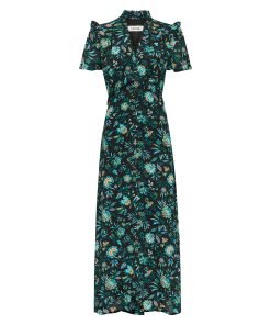 The Liliana dress flatters so many figures thanks to its V-neckline, high hip-skimming waist and softly shoulder-defining frill detailing. Designed in a beautifully drapey cotton viscose georgette that’s fully lined, it’s practical as well as pretty – the rouleau buttons are stitched down through the bust and waist to avoid gaping but can be opened at the bottom to show off more leg.