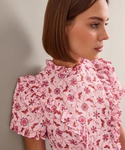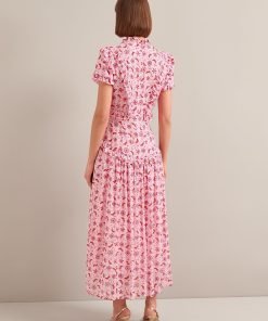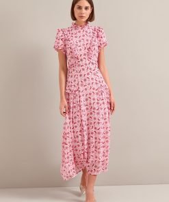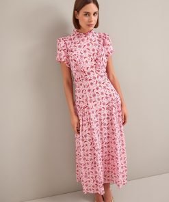 Mirabel Gold Metallic Fil Coupé Maxi Dress – Pink Floral Trellis Print
