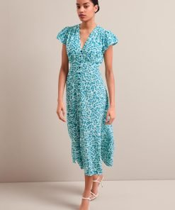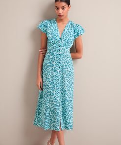 Cool, modern and elegant, Leila’s puff sleeve, V-neck and under-bust shirring create a super flattering silhouette. Cut from lightweight and luxe crepe de chine, it has fixed buttons (so won’t gape) and sexy side slits to allow easy movement. Choose between our iconic Camo Pansy print in a soft yet stand-out red, or new-for-this-season Abstract Feather print.
