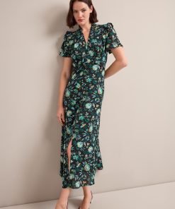 The Liliana dress flatters so many figures thanks to its V-neckline, high hip-skimming waist and softly shoulder-defining frill detailing. Designed in a beautifully drapey cotton viscose georgette that’s fully lined, it’s practical as well as pretty – the rouleau buttons are stitched down through the bust and waist to avoid gaping but can be opened at the bottom to show off more leg.
