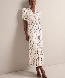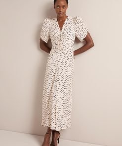 On-trend and ready to party, Ophelia has a dramatic silhouette and vintage feel with its oversized statement sleeve and voluminous bias-cut skirt with godet inserts. Fully lined, the ruche detailing and shirring at the back waist make it fitted yet forgiving. Accessorize with a killer heel and cocktail in hand and get ready to receive your compliments.