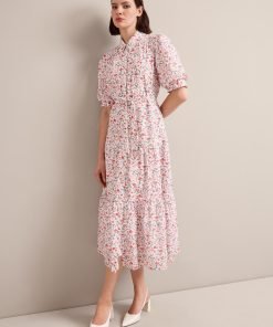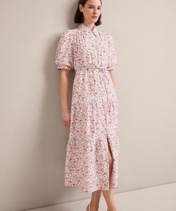 Poppy Silk Blend Maxi Dress – Red Trailing Feather Print